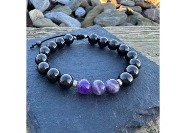 Ta piękna bransoletka jest nie tylko funkcjonalna, ale także stylowym dodatkiem do Twojej garderoby. Wspaniały ametyst i kamień szungitowy płynnie się ze sobą łączą, tworząc elegancki i przyciągający wzrok wygląd, który uzupełnia każdy strój.